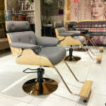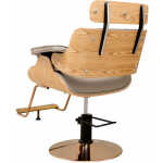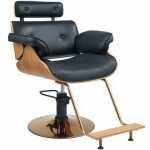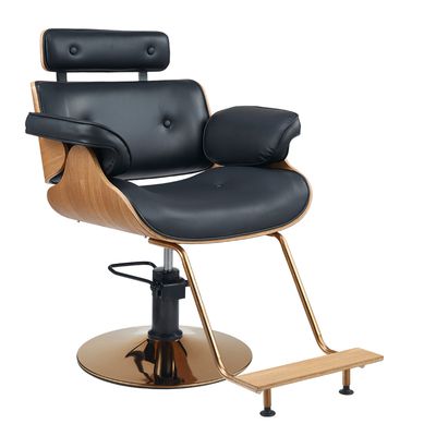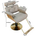 Chaise élégante et moderne pour salons de coiffure et de beauté. Un fauteuil de style en cuir magnifiquement conçu avec une forme arrondie moderne. Le fauteuil de coiffure repose sur une base chromée rotative avec réglage hydraulique de la hauteur. Le coussin doux et confortable offre au client un confort supplémentaire lors de sa visite.