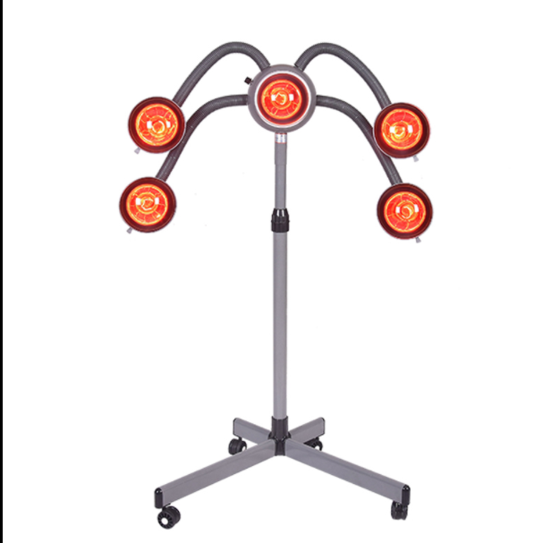 5 tête Infrarouge Chaleur Lampe, Debout/fixé au mur Sèche-cheveux Couleur Processeur Accélérateur Chauffe eau, Professionnel Roulant Salon Coiffure Beauté Traitement Lumière rouge Équipement,A