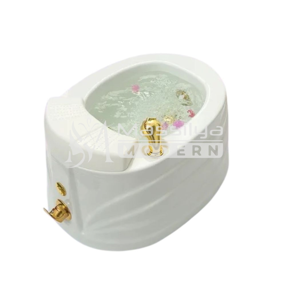 Bassin de pédicure spa élégant avec jets de massage et accessoires dorés (gold) pour une expérience de luxe. Idéal pour salons de beauté et spas.