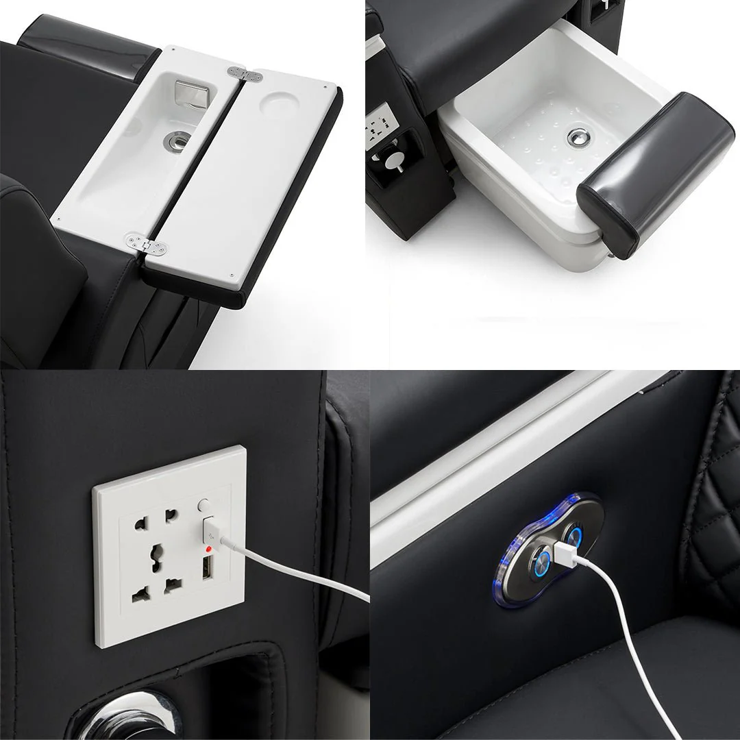 Le fauteuil de massage et de pédicure Bella Elite est un ajout haut de gamme à tout salon de manucure haut de gamme. Conçu à la fois pour la fonctionnalité et l’esthétique, ce fauteuil offre un lavabo intégré dans l’accoudoir, garantissant un design épuré et efficace. Le dossier à commande électrique offre aux clients la possibilité d’ajuster leur position assise pour un confort optimal. Une caractéristique unique de ce fauteuil est le bain de pieds intégré dans le tiroir à pieds, éliminant le besoin de configurations externes. Le repose-pieds réglable en hauteur permet aux clients de toutes tailles de se détendre confortablement. Son design élégant est non seulement fonctionnel, mais ajoute également une touche d’élégance à n’importe quel espace.