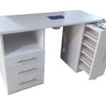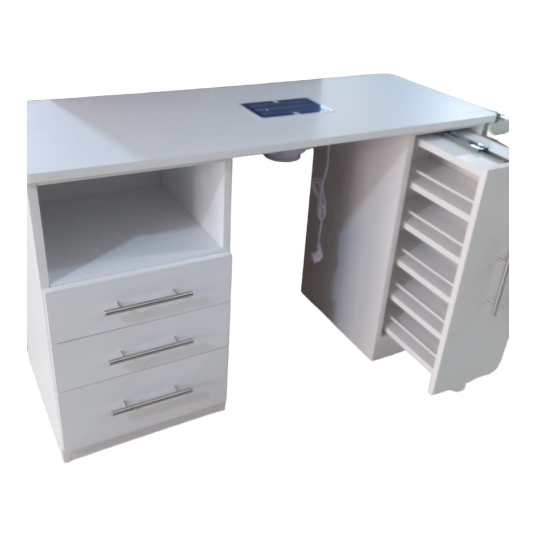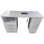 Table de manucure professionnelle avec repose-mains et aspirateur à poussières, parfait pour salon de beauté ou de reconstruction des ongles