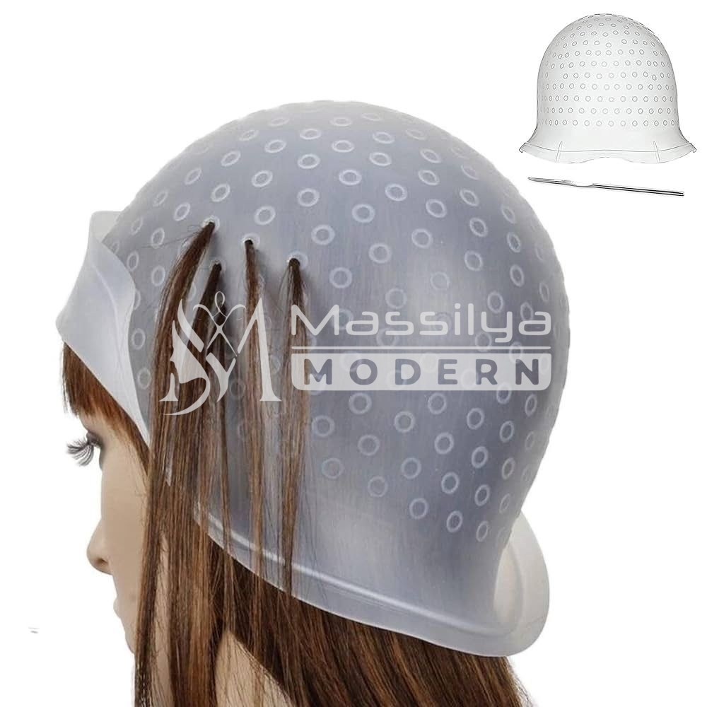 Le bonnet à mèches en silicone est un accessoire professionnel conçu pour réaliser facilement des mèches ou des reflets dans les cheveux. Grâce à ses multiples perforations, il permet de sélectionner avec précision les mèches à colorer, assurant un résultat homogène et naturel.