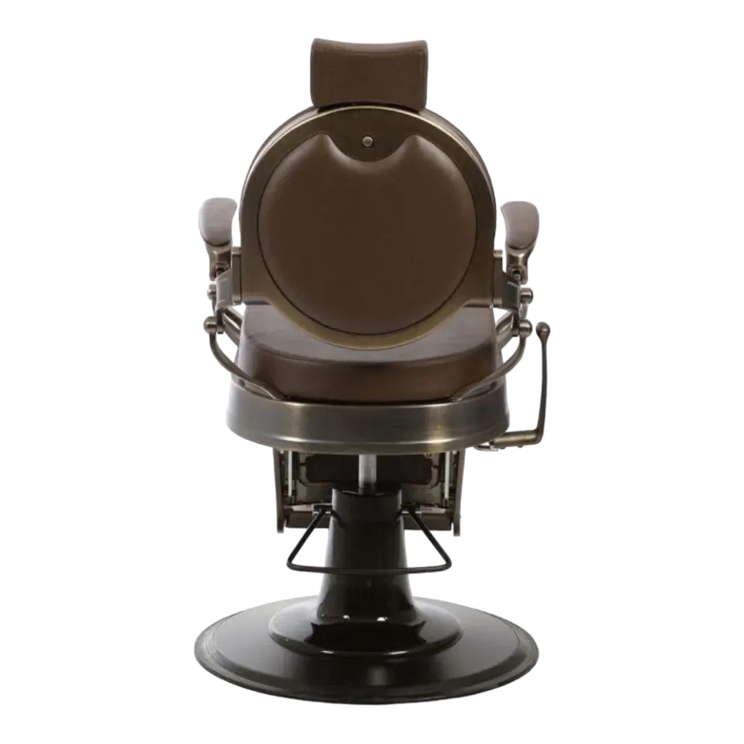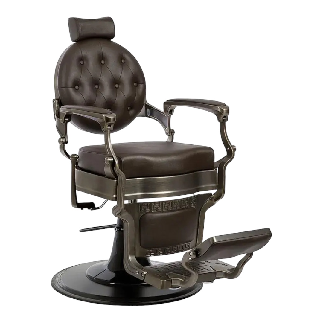 Grâce à la pompe hydraulique blocable avec frein réglable, vous pouvez régler la hauteur de la chaise barbier Clovis Brun qui peut supporter jusqu’à 300 kg. La base du fauteuil barbier Clovis Brun est ronde. Elle dispose d’un enjoliveur de pompe en fibre de verre peint en marron mat. Ce chaise barbier est livré avec appuie-tête extensible et réglable.