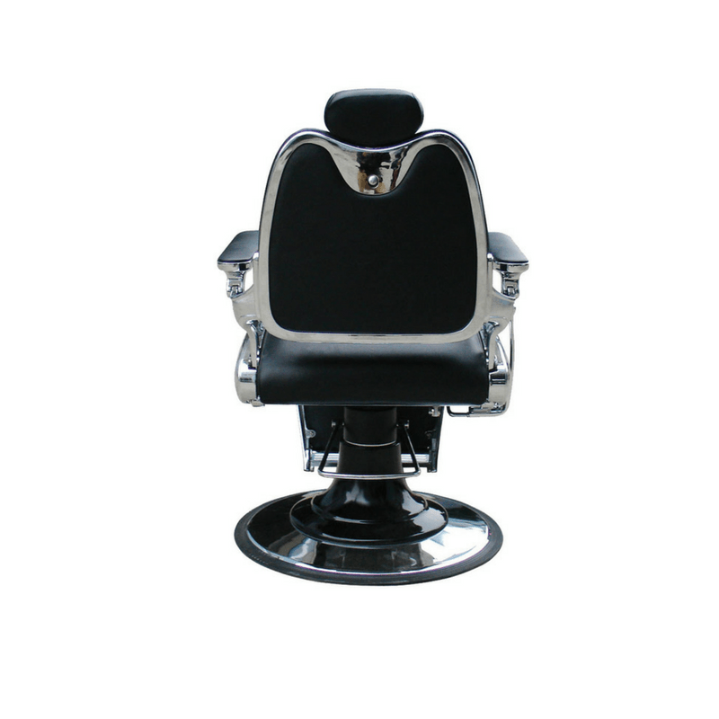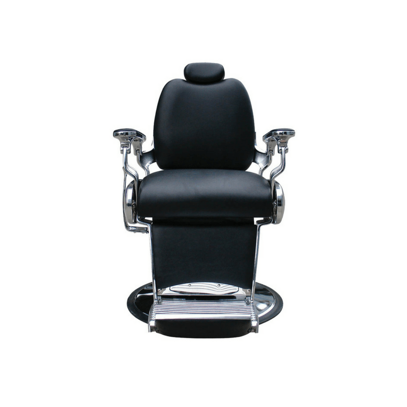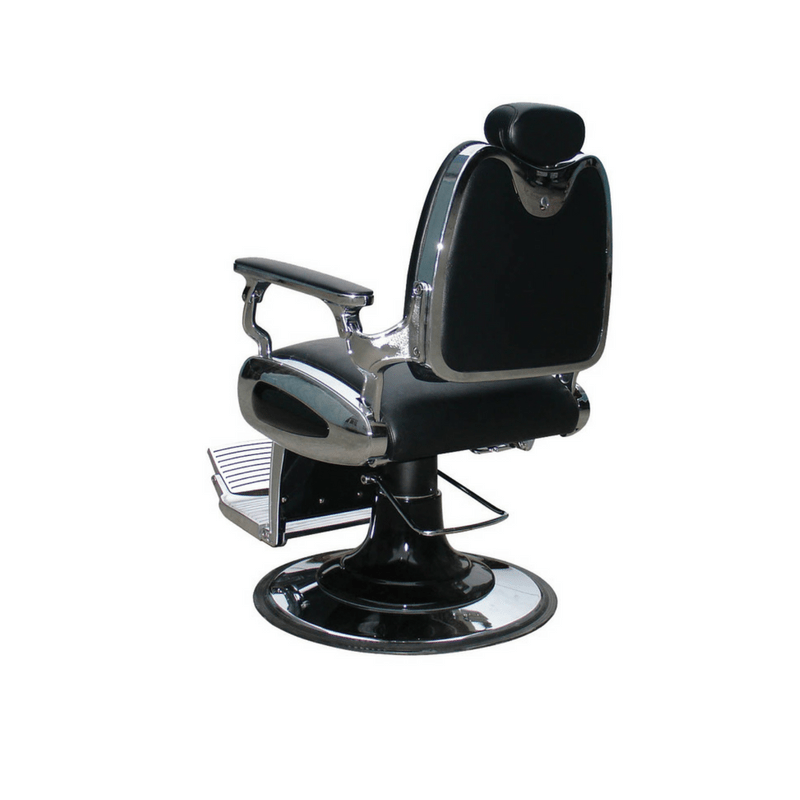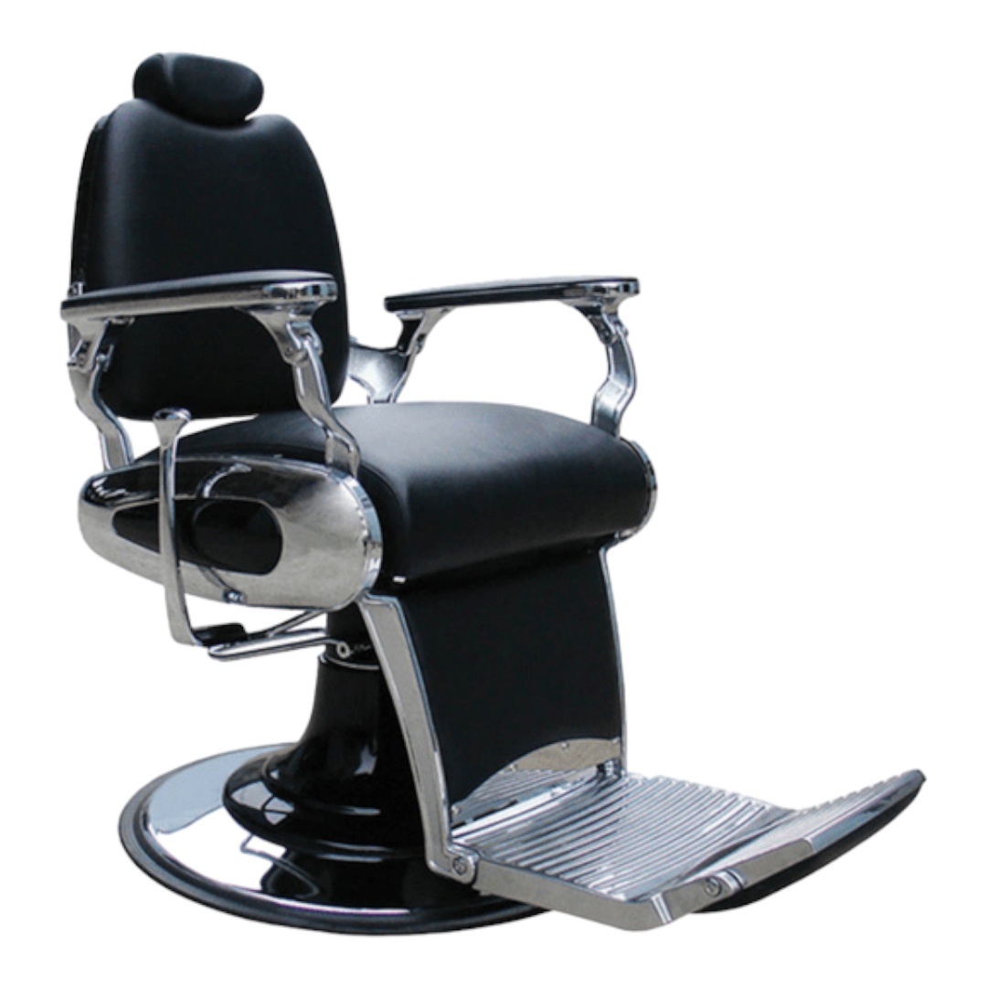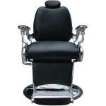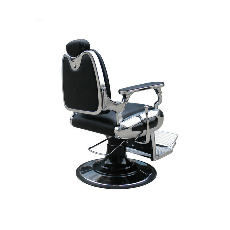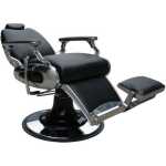 Fauteuil barbier premium de haute qualité avec dossier et repose-pieds inclinables. Tapissé en simili-cuir retardant au feu. Mousse de haute densité de récupération rapide. Pompe hydraulique réglable en hauteur