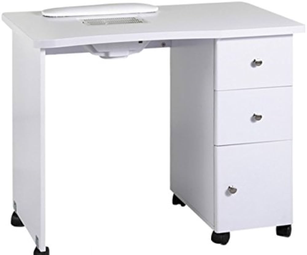 Table de manucure professionnelle avec repose-mains et aspirateur à poussières, parfait pour salon de beauté ou de reconstruction des ongles