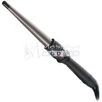 Featuring a tapered barrel from 25mm to 13mm, this curling iron offers endless styling possibilities, from natural curls to delicate waves. The Titanium-Tourmaline technology delivers professional results while protecting hair and enhancing its shine. Featuring precise temperature control (110°C to 190°C) and a stay-cool tip, it ensures safe and effortless styling. Its ergonomic design and included accessories, such as protective gloves, make it the perfect tool for achieving glamorous or natural looks.