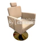 Fauteuil professionnel au design élégant et contemporain, spécialement conçu pour les salons de coiffure et de maquillage haut de gamme. Il combine confort, stabilité et fonctionnalité, tout en apportant une touche luxueuse grâce à sa base finition Gold.