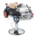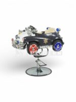 Fauteuil de coiffure spécial enfants en forme de voiture de police, conçu pour transformer la coupe de cheveux en un moment ludique et sans stress. Son design réaliste attire l’attention des enfants et facilite le travail du coiffeur.
