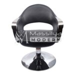 Fauteuil de coiffure professionnel au design moderne et épuré, parfaitement adapté aux salons de coiffure (femme ou mixte). Sa forme enveloppante avec ouverture arrière assure un excellent confort à la cliente tout en facilitant le travail du coiffeur. La base chromée brillante et les accoudoirs en aluminium apportent une touche élégante et professionnelle.