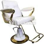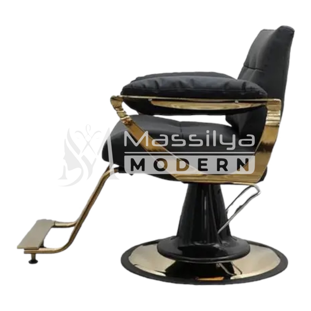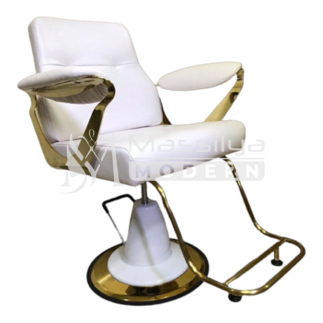 Chaise élégante et moderne pour salons de coiffure et de beauté. Un fauteuil de style en cuir magnifiquement conçu avec une forme arrondie moderne. Le fauteuil de coiffure repose sur une base chromée rotative avec réglage hydraulique de la hauteur. Le coussin doux et confortable offre au client un confort supplémentaire lors de sa visite.