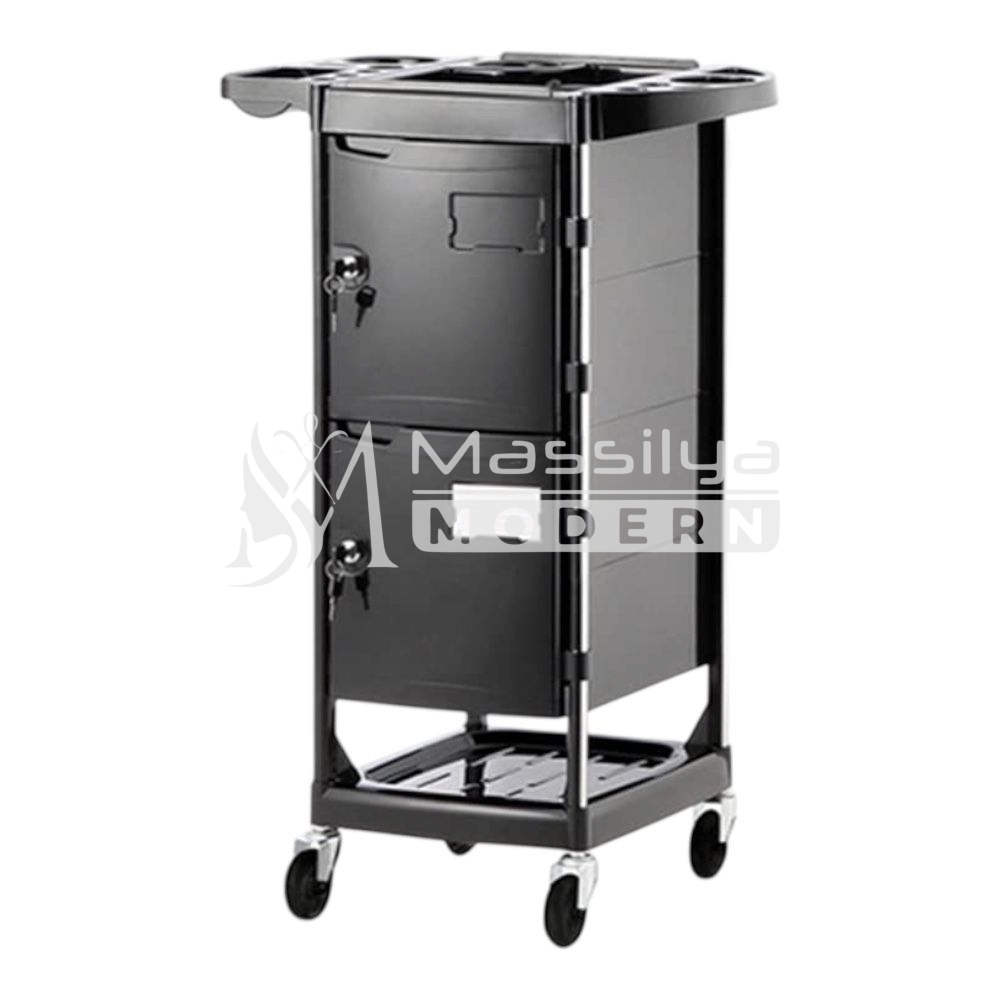 Chariot de Rangement Professionnel avec Serrure – 2 Portes – Noir