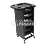 عربة تخزين متعددة الاستعمالات مخصصة لصالونات الحلاقة والتجميل. مصنوعة من مادة بلاستيك مقاوم ومتينة، وتتميز بتصميم عصري باللون الأسود الكامل مع عجلات دوّارة 360° لتسهيل الحركة داخل الصالون. مثالية لتنظيم أدوات الحلاقة، الصباغة، الفوط، والمستحضرات اليومية.